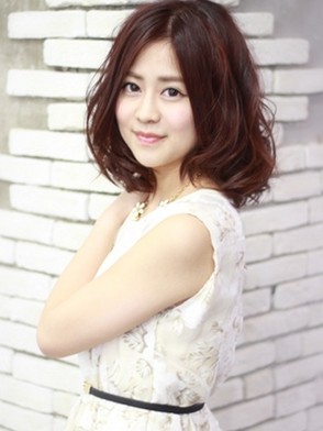 動きのあるミディアムスタイル。 ランダムなカールでアクティブ感のある女性に☆
