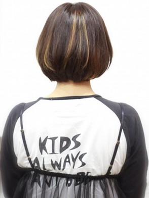 アゴラインの重めボブで耳にかけた時に見えるハイライトでオシャレ感up