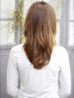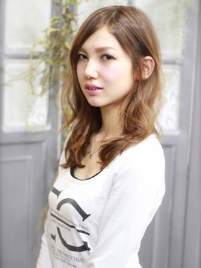 コテで下は平巻きで一回転巻き、トップは中間巻きでほつれるようにする。 スタイリング剤はスプレーwaxで動き出す。 耳掛けスタリングも◎