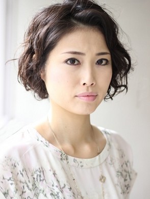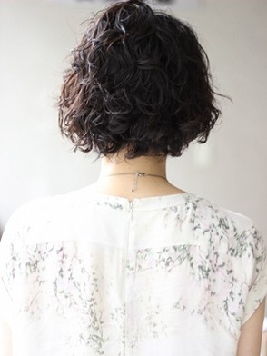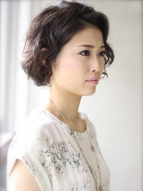 少し強めのパーマ&前髪立ち上げることで 洗練さをだしたヘアスタイル