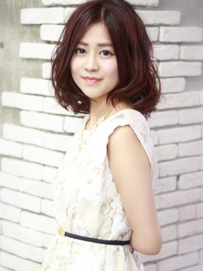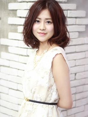 動きのあるミディアムスタイル。 ランダムなカールでアクティブ感のある女性に☆