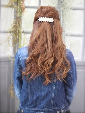 上半分をねじってバレッタでまとめた 簡単アレンジ☆